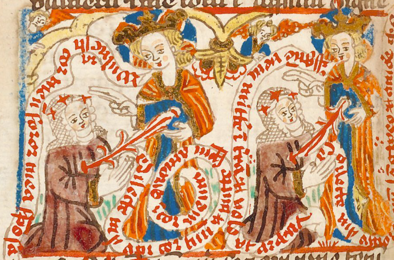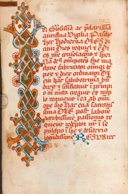 My interest in the Buxtehude manuscripts was sparked several years ago. For my PhD, I focused on the Latin and Low German manuscripts from the Cistercian convent of Medingen near Lüneburg. Founded in the 13th century, Medingen remains active today as a Protestant convent. To date, 65 Latin and Low German manuscripts have been attributed to Medingen. While researching these manuscripts, I came across the Latin and Low German Easter prayer book of Cecilia Hüge—an excellent point of comparison for the Medingen prayer books. Despite its significance, this small but remarkable volume—now housed in the Landesbibliothek Württemberg in Stuttgart (Cod. brev. 22)—had remained largely unexplored. In other words, Cecilia’s Easter prayer book was still a terra incognita, an uncharted territory of exceptional beauty, as the images below vividly attest, waiting to be discovered.